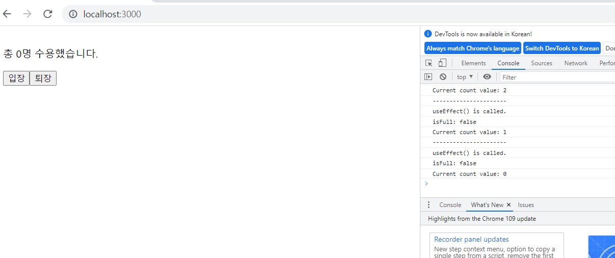 카운트 개수가 최대 용량을 초과하면, 경고 문구가 표시되어 더 이상 입장이 불가능해진다.