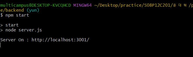 그리고 server.js가 있는 경로에서, npm start를 수행하면..