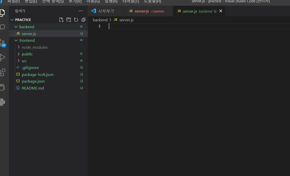 front와 back을 구분하고, back 부분에 server.js 파일을 생성