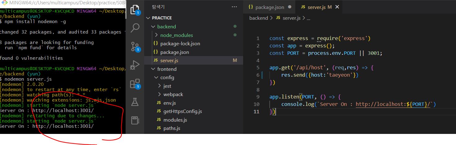 그리고 서버 실행시에 nodemon server.js로 실행하면 된다
