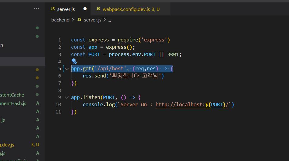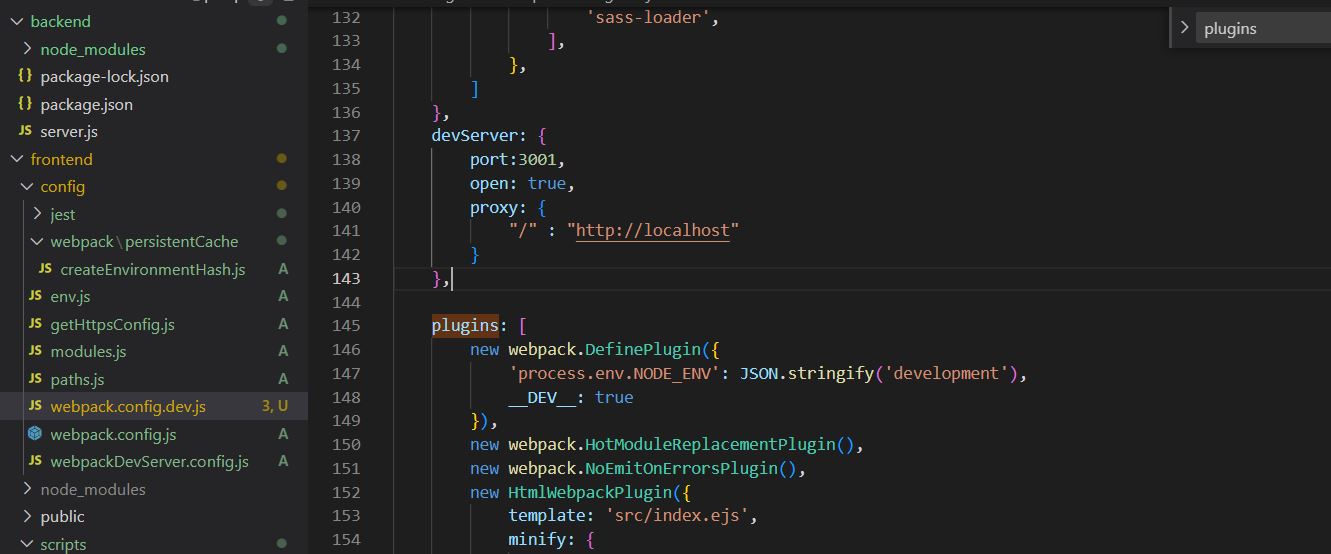그리고 webpack.config.dev.js 파일을 찾아서 코드를 수정