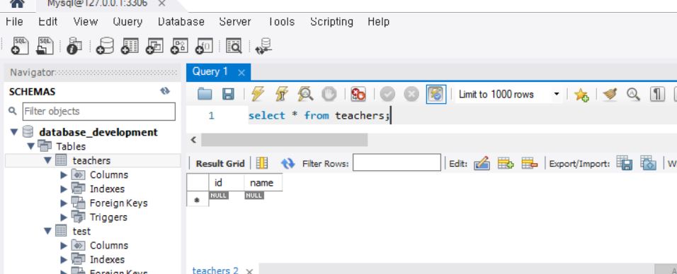 여기서 다음 name부분은 teacher 테이블의 column 역할을 한다