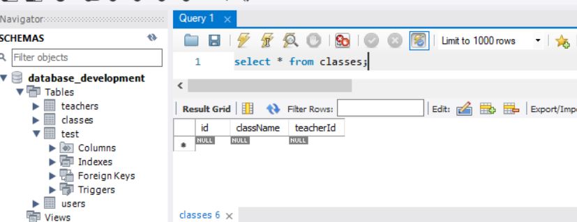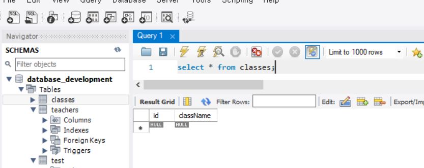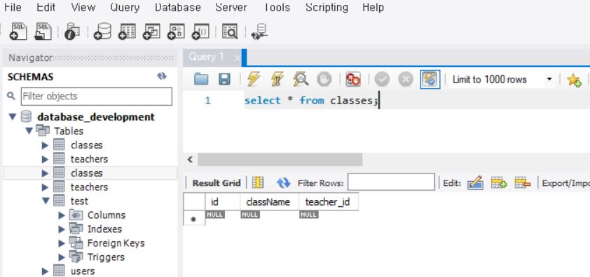 혹시나 추가가 안된다면, drop table teachers, drop table classes로 테이블 삭제하고,
