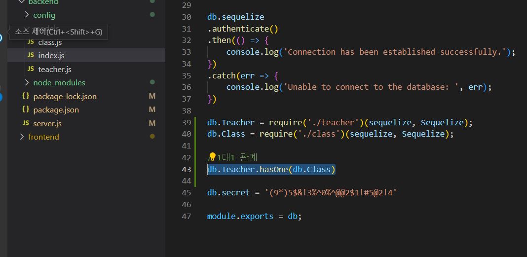 models/index.js에 다음 코드를 추가