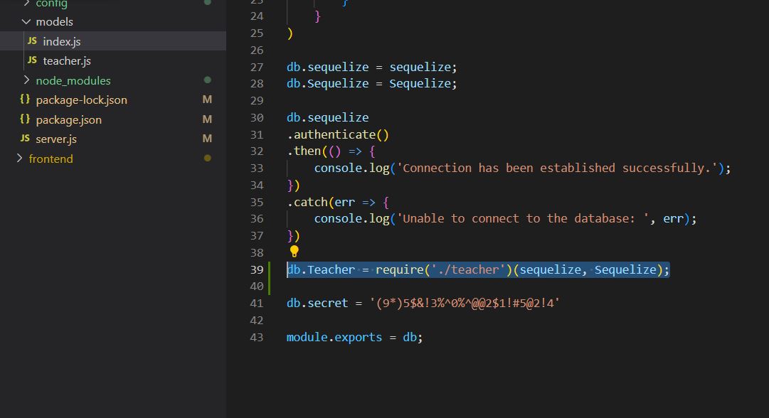 새로 만든 teacher.js를 sequelize에 추가