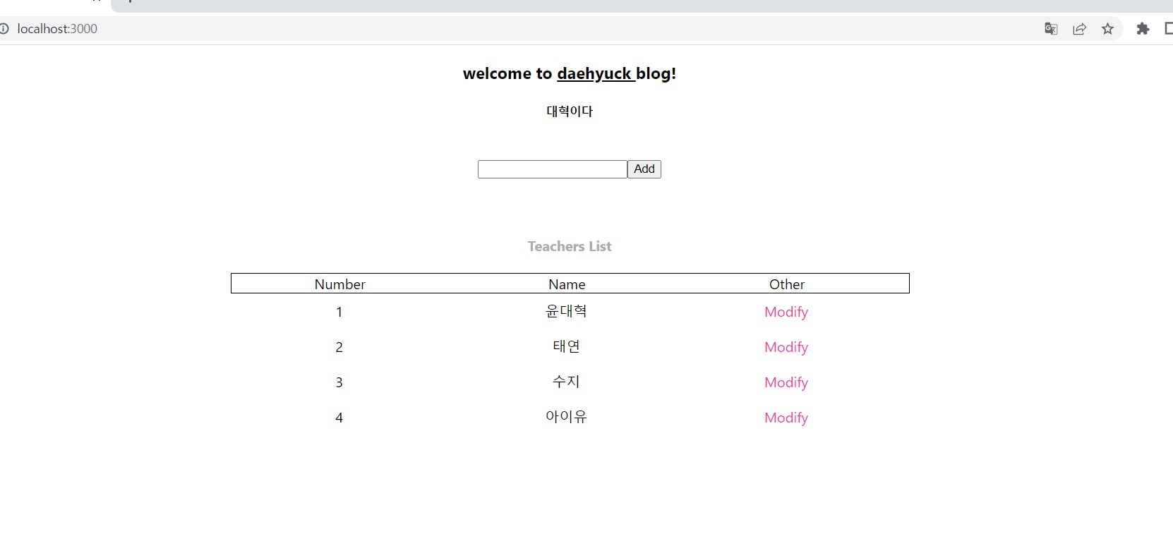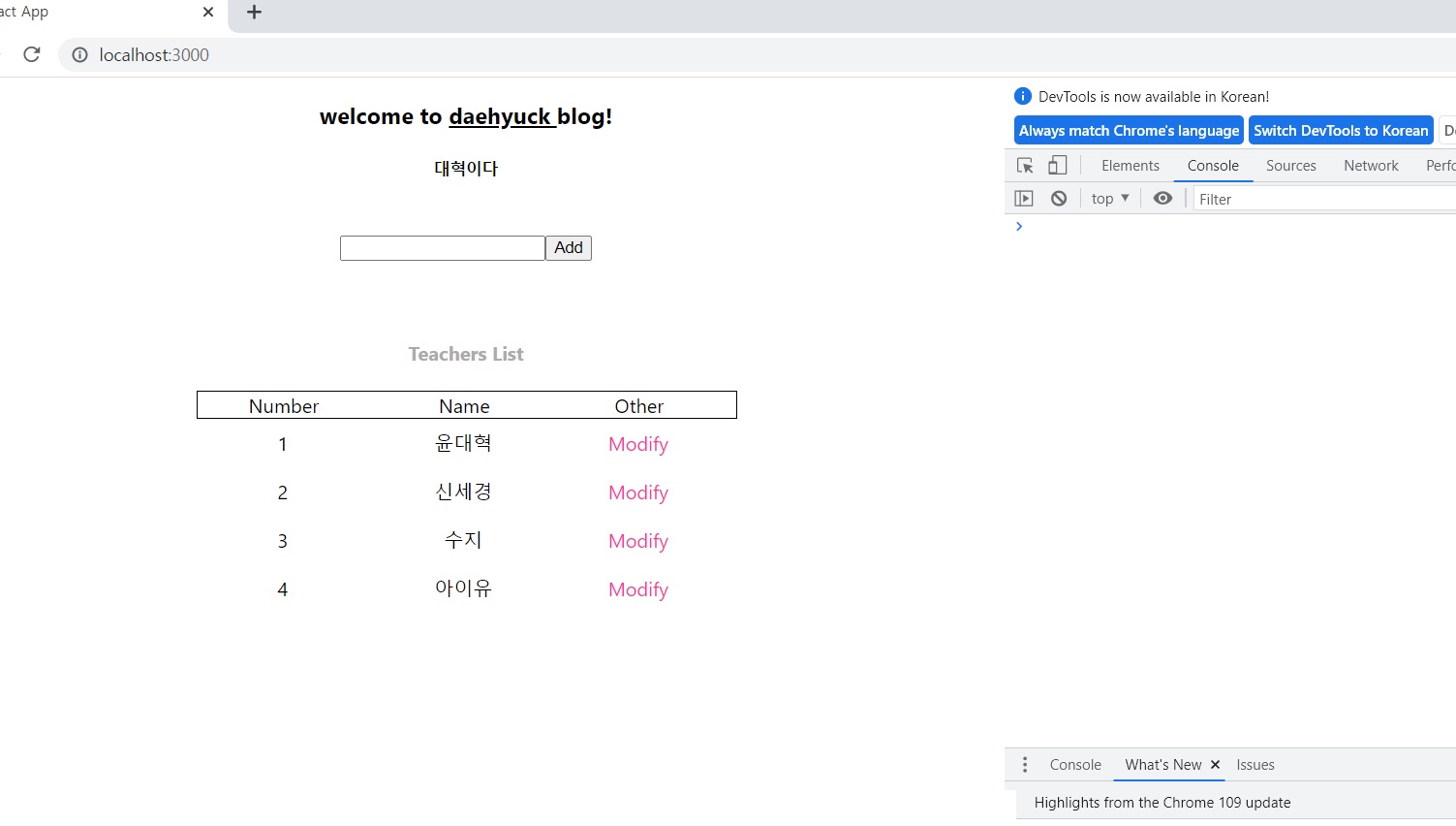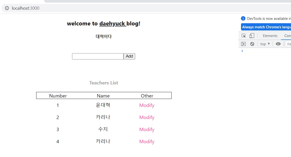 App.js에 데이터를 수정하는 함수 modifyData를 작성