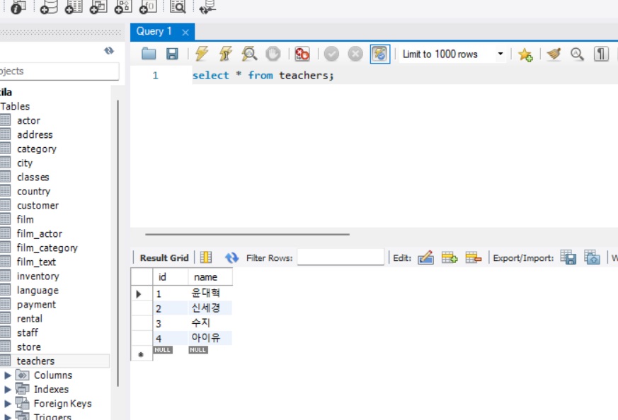 name이 '태연'인 값을 찾았다면, 그 값을 '신세경'으로 바꾸겠다는 의미이다.