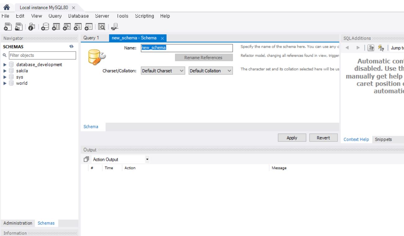 스키마 이름을 작성하고 charset이랑 collation을 선택