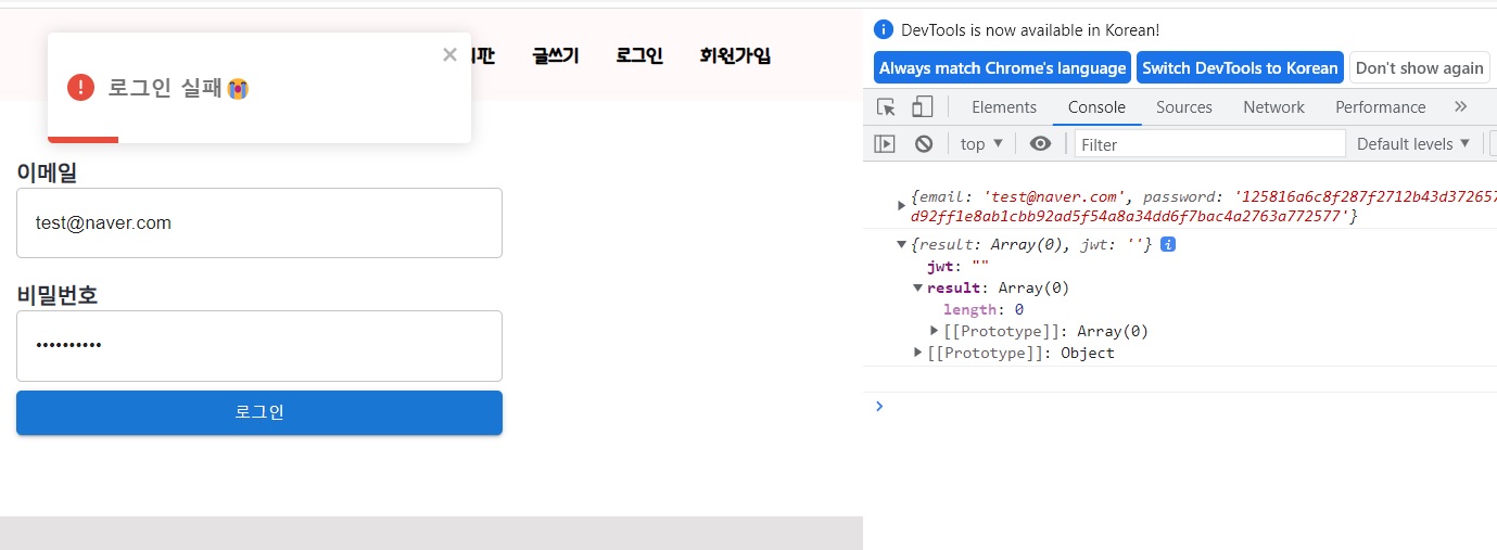 로그인할때 비밀번호를 암호화해서 서버에 전달해줄 필요가 있다