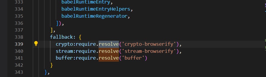 물론 crypto-browserify를 작성하고, 다시 에러나서 stream-browserify, buffer도 설치하라고 나와서