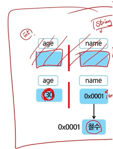기본 자료형인 int의 경우 그냥 바로 공간에 값이 저장