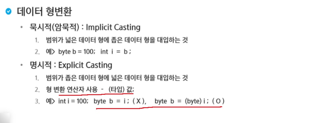 범위가 넓은 데이터 형에 좁은 데이터 형을 대입하는 것이다