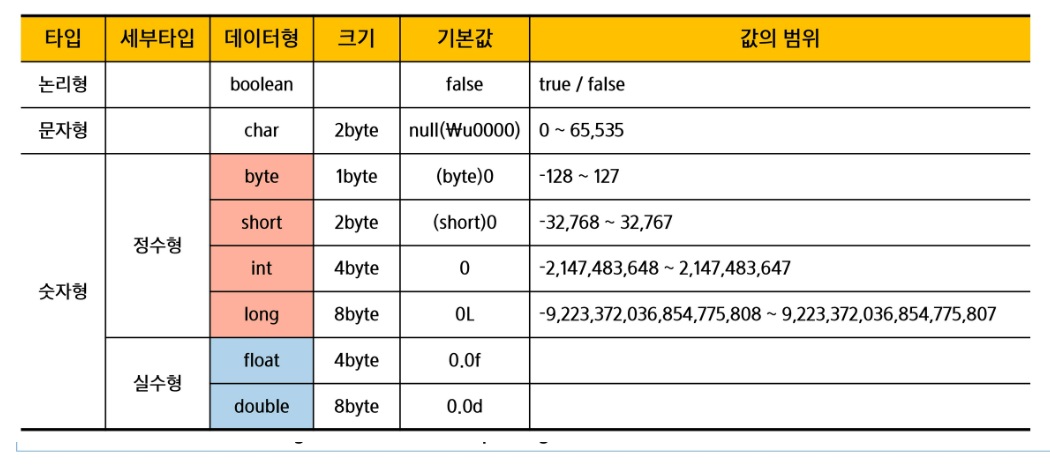 전부 달달 외울필요는 없지만 int나 double같이 자주 쓰는 얘들 위주로 쓰다보면 알아서 외워짐