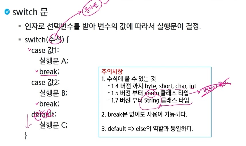 마지막 default는 if - else문에서 else와 역할이 동일함