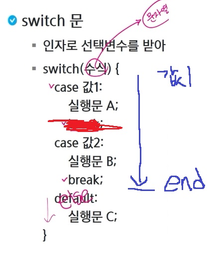 수식에 의해 값1을 얻게 된다면... case 값1:에 의해 실행문 A;를 수행한다