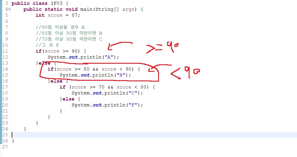 근데 보면 여기 else로 들어오면.. 당연히 90점 미만이다