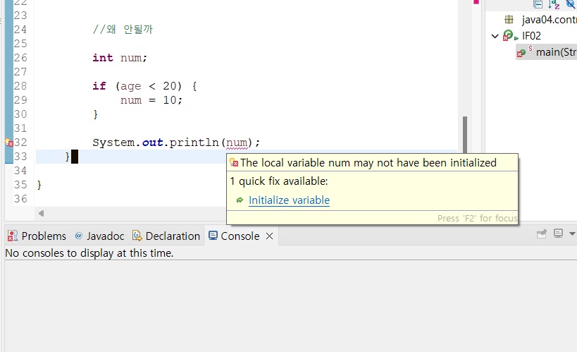 이런 경우 num이 초기화되어 있지 않다고 에러남
