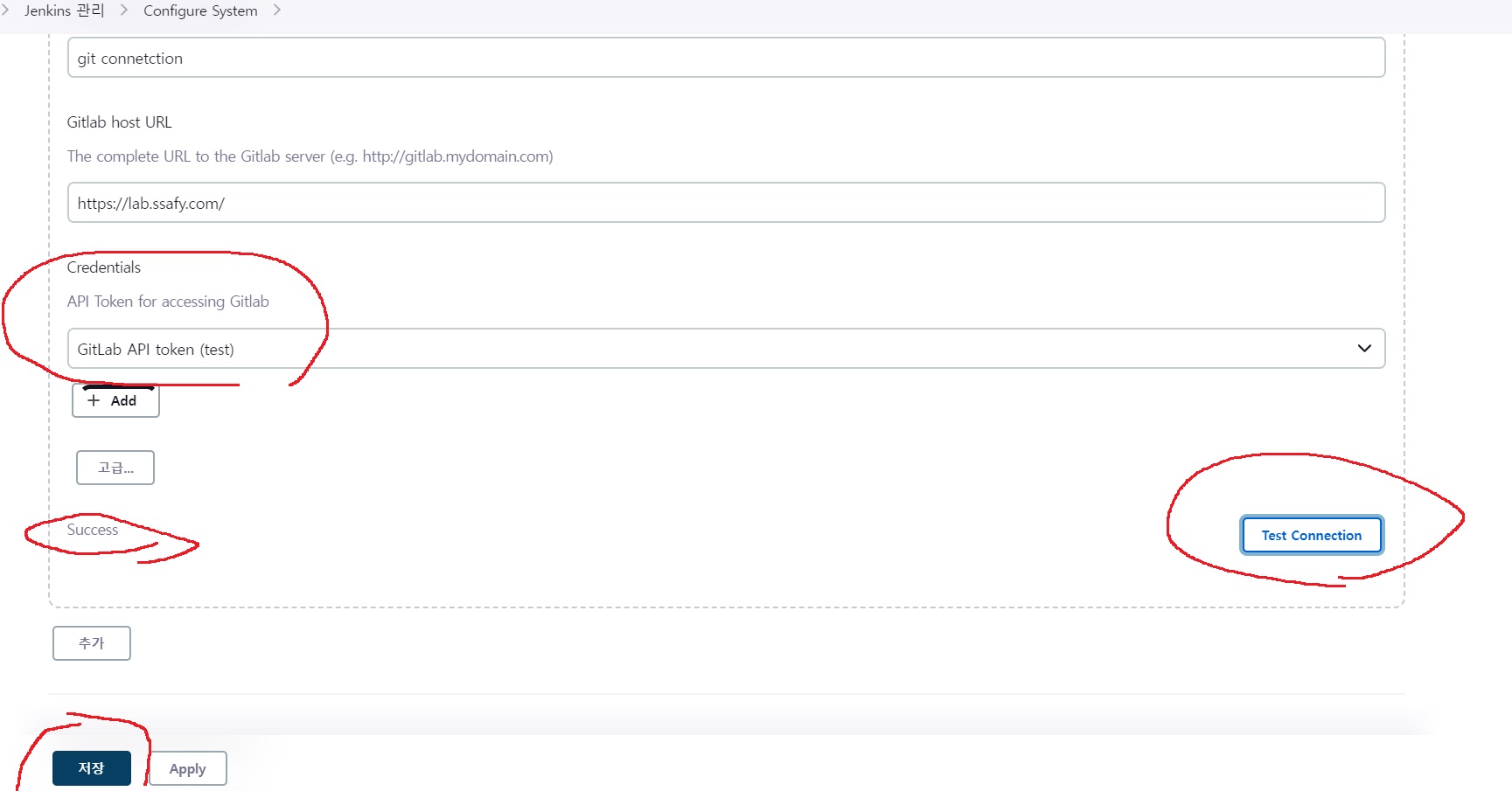 좌측에 Success라고 뜨면 성공이고 아래에 저장을 눌러준다