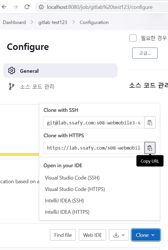 repository url에는 gitlab에서 clone 누르고 clone with https 쪽을 copy해서 입력해주자