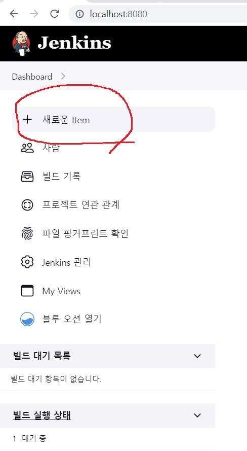 - 젠킨스(Jenkins) 윈도우(Windows)에서 Github Private Repositories를 불러오는 방법입니다. - 필수 준비물 : Git, Private Repo, Jenkins, GitHub ID 1. 젠킨스에 로그인 한 뒤 "새 작업"을 눌러줍니다. 2. item name에 자신