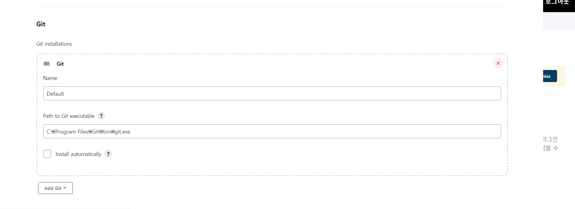 내려가다보면 Git부분이 있는데 Path to Git executable에 원래