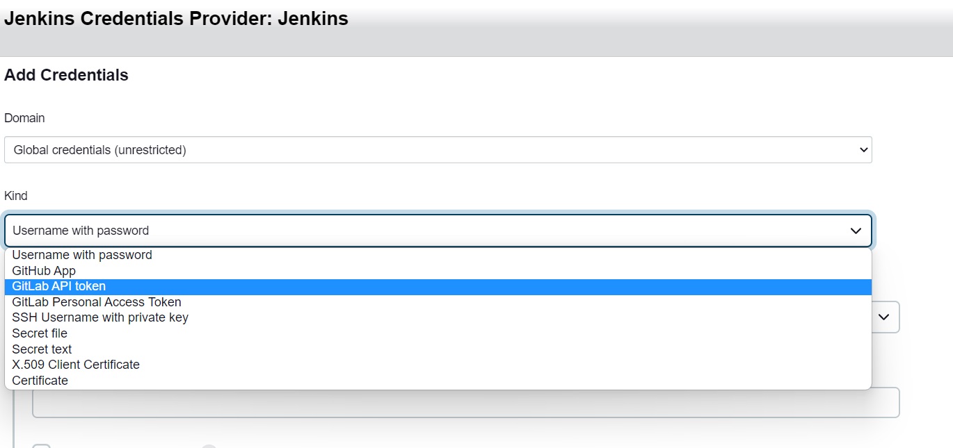 창이 하나 나오는데 kind쪽에 gitlab api token을 눌러주고