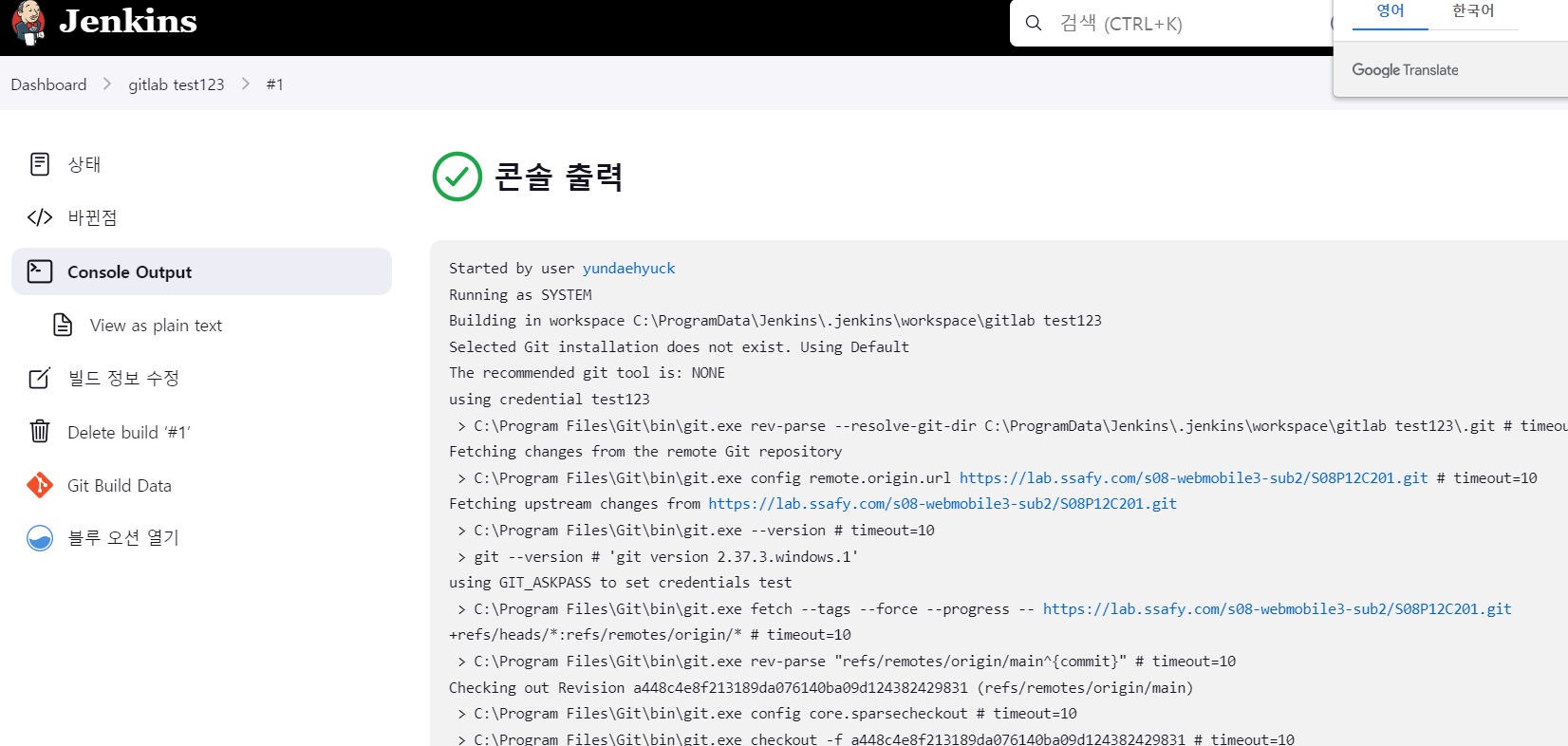 나오는 화면에서 지금 빌드 누르면 빌드가 시작된다.