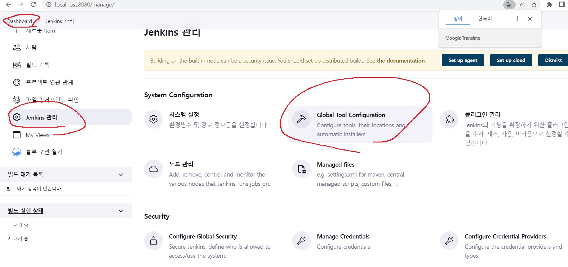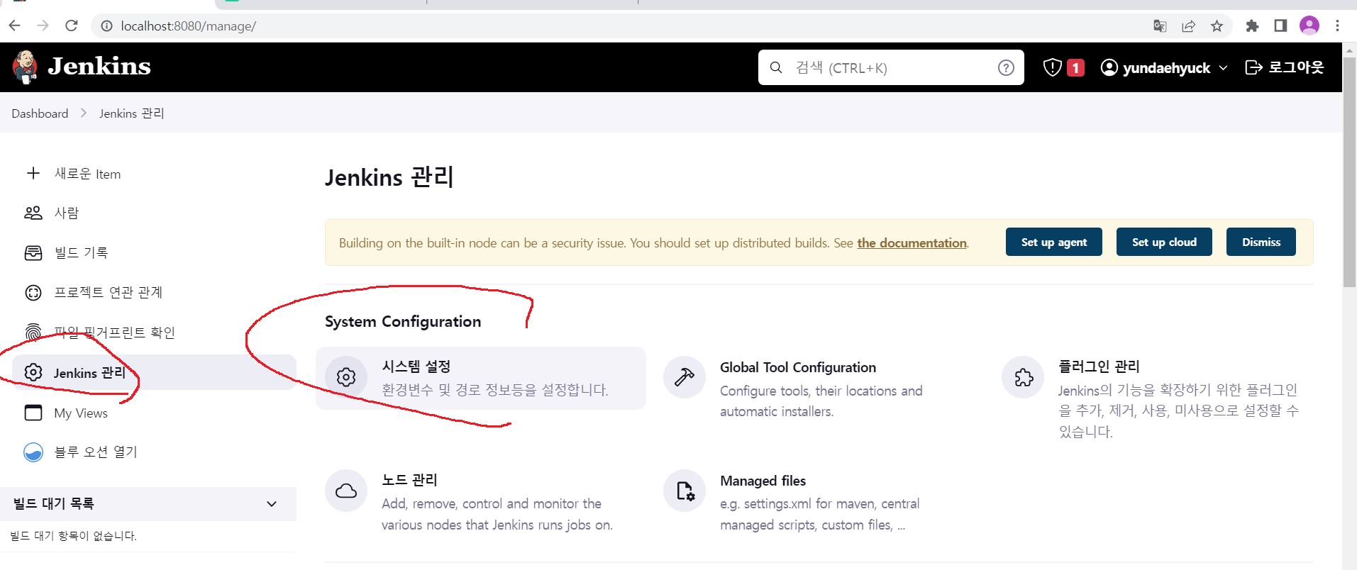 jenkins 관리에서 시스템 설정으로 들어가준다