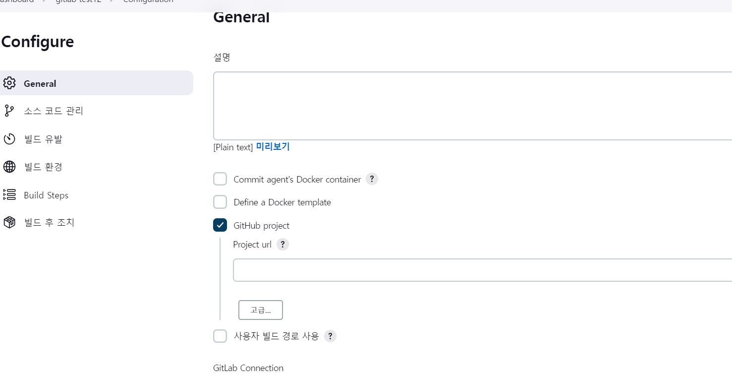 빌드 유발 옵션 설정할 수 있는데 필요하다면 설정하기로 하고