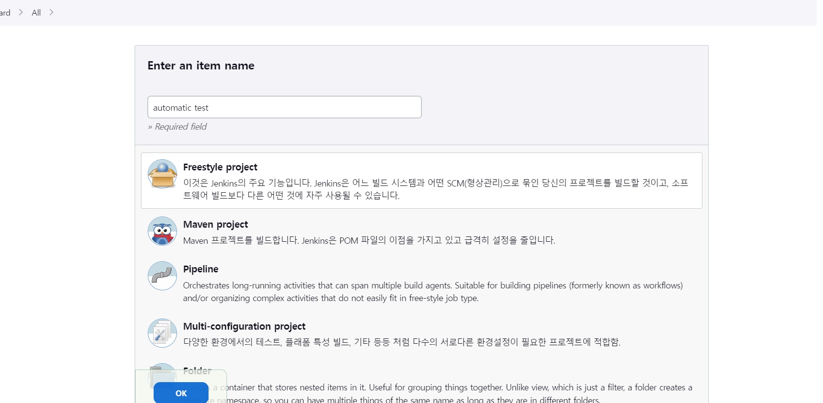 젠킨스에서 나머지 빌드 설정을 수행