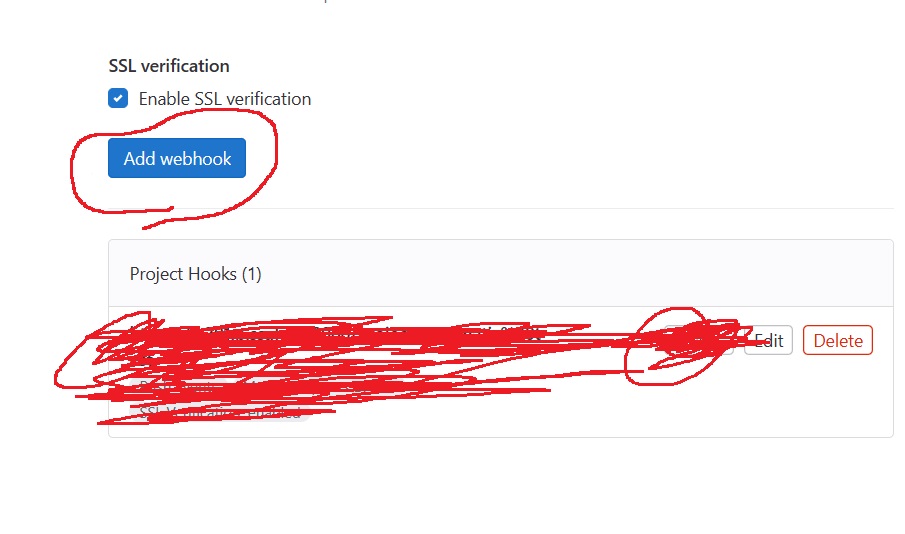 add webhook을 눌러서 아래와 같이 project hook이 들어오면 webhook 설정이 끝