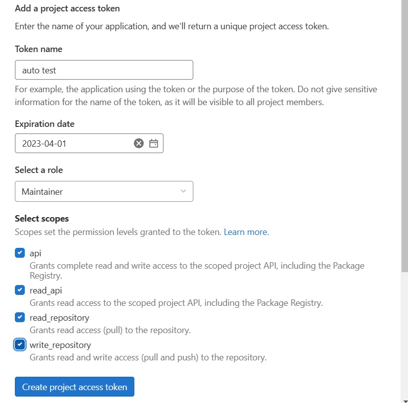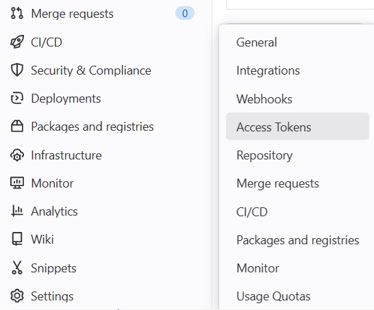 gitlab repo에서 settings - access token으로 들어가 token을 발급받는다