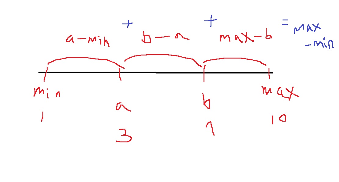 min과 max 사이에 구슬이 어떻게 배치되더라도... max-min보다 작을 수는 없을 것이다