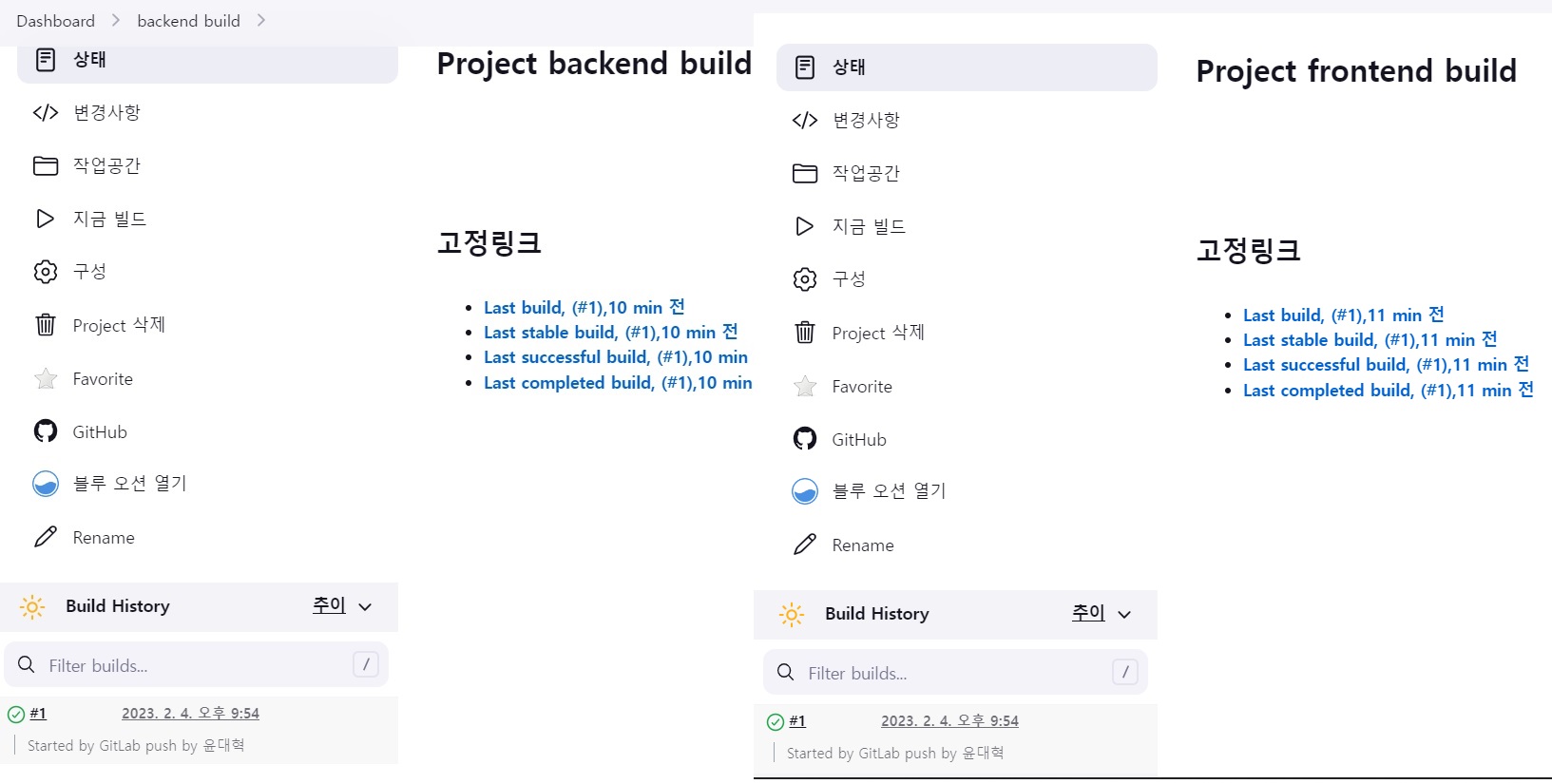 | gitlab 프로젝트 CI/CD 환경 구축하기 6편 -gitlab에 push하면 자동으로 프론트엔드 빌드하기- (0) | 2023.02.04 |