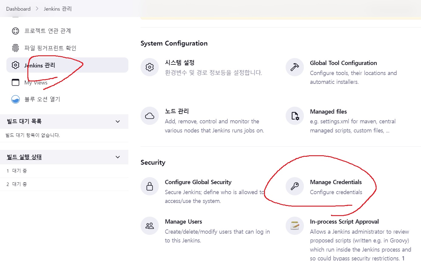 아래쪽 stores scoped to jenkins에 global을 눌러 global credentials로 들어가기