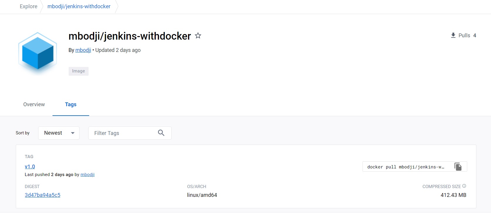 여긴 v1.0이 태그라 내가 mbodji/jenkins-withdocker:v1.0라고 썼다..