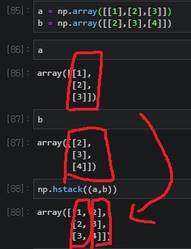 당연하지만 axis=1로 concatenate 하고 싶을려면 a,b모두 axis=1 축이 있어야함