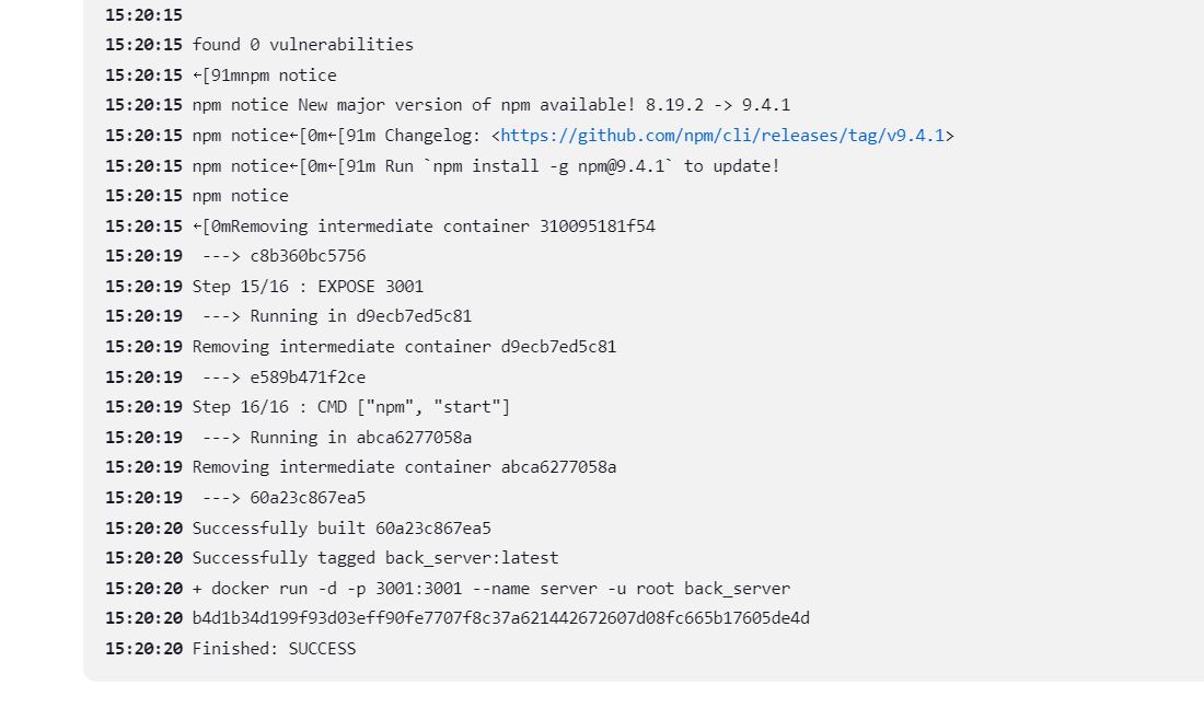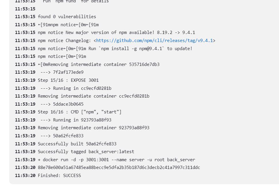젠킨스 빌드 과정에서 띄워진 컨테이너를 지우는 명령 docker rm -f (컨테이너 이름)을 넣어줄 필요가 있겠다