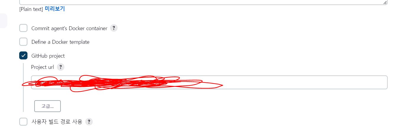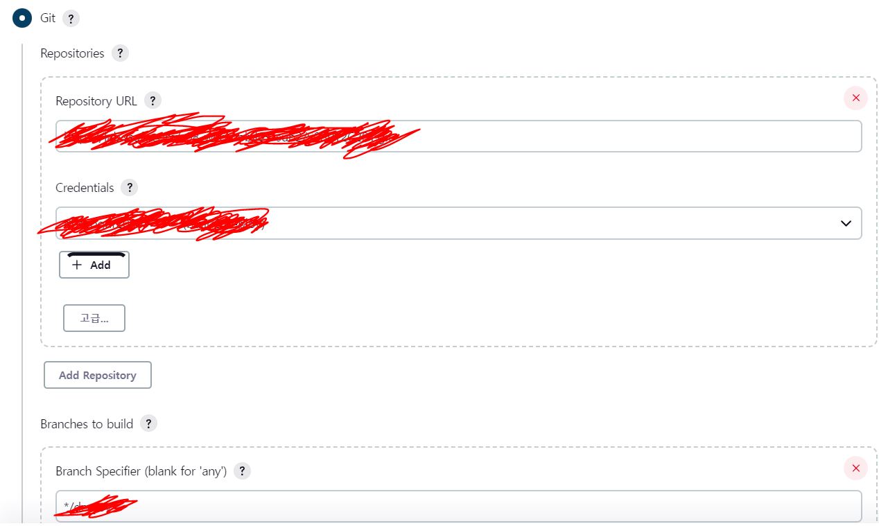 소스코드 관리에 git부분 설정해주고(이건 필수)