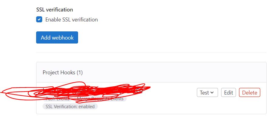 gitlab settings > webhook 들어가서 url, token 입력해서.. add webhook 누르면 생성