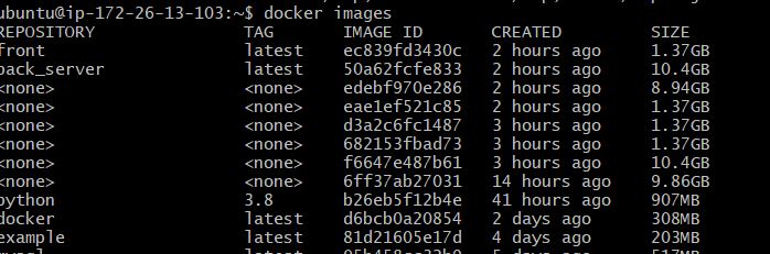 도커 이미지로 만들면 <none>이라는 쓸데없는 이미지가 만들어지더라