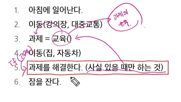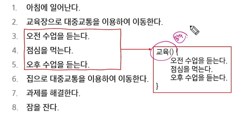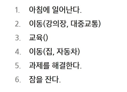 컴퓨터 입장에서 교육생을 컨트롤한다고 할때.. 위 일과 하나하나는 교육생에 대한 "명령어"