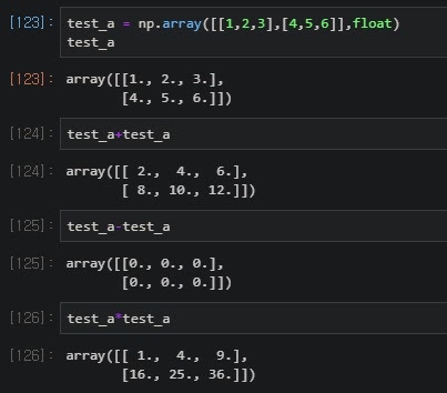 numpy는 단순 list와는 다르게 기본적으로 array끼리 사칙연산을 지원함