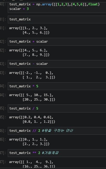 scalar가 matrix의 모든 원소에 대응하여 연산함