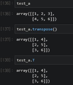 transpose는 a.T , a.transpose()