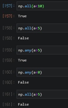 np.any(<condition>) array내 모든 원소에 대해 하나라도 True이면 True