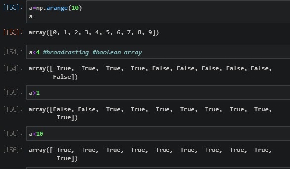 단순히 array를 scalar와 비교하면 array 원소 모두에 대해 comparison하여 boolean array로 반환