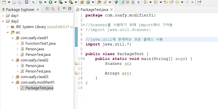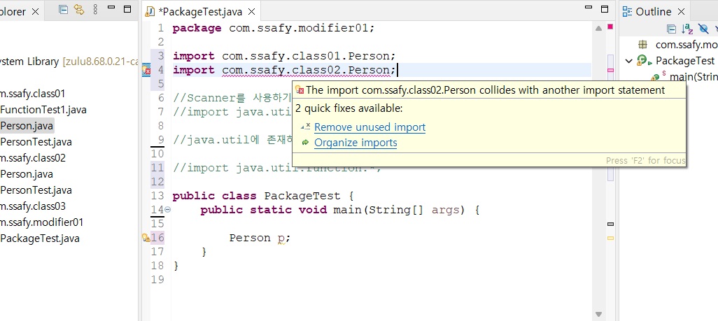 이럴때는 하나를 지우고 다른 하나를 쓰고 싶으면 그 안에서 com.ssafy.class02.Person p; 이런식으로 사용하면 된다