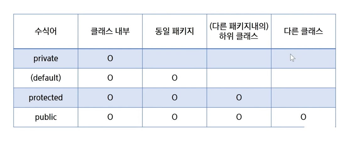 클래스에서 선언된 변수 중 접근제한에 의해 접근할 수 없는 변수의 경우 다른 클래스에서 접근할 수 없기때문에