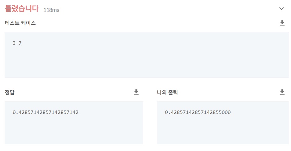 일단 생각할 수 있는 방법은 %.20f 로 a/b를 출력하는 것이다.